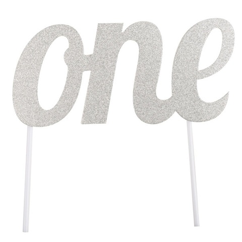 Silver Glitter ONE Cake Topper